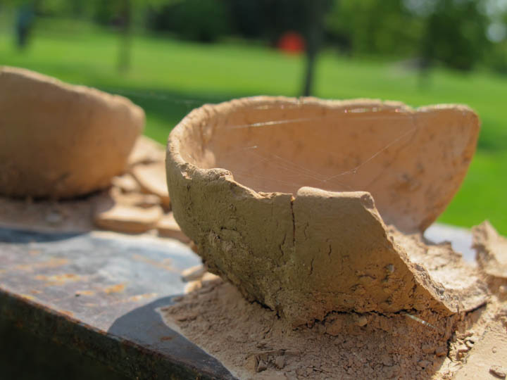 Low-fired local clay on 25' oak plank